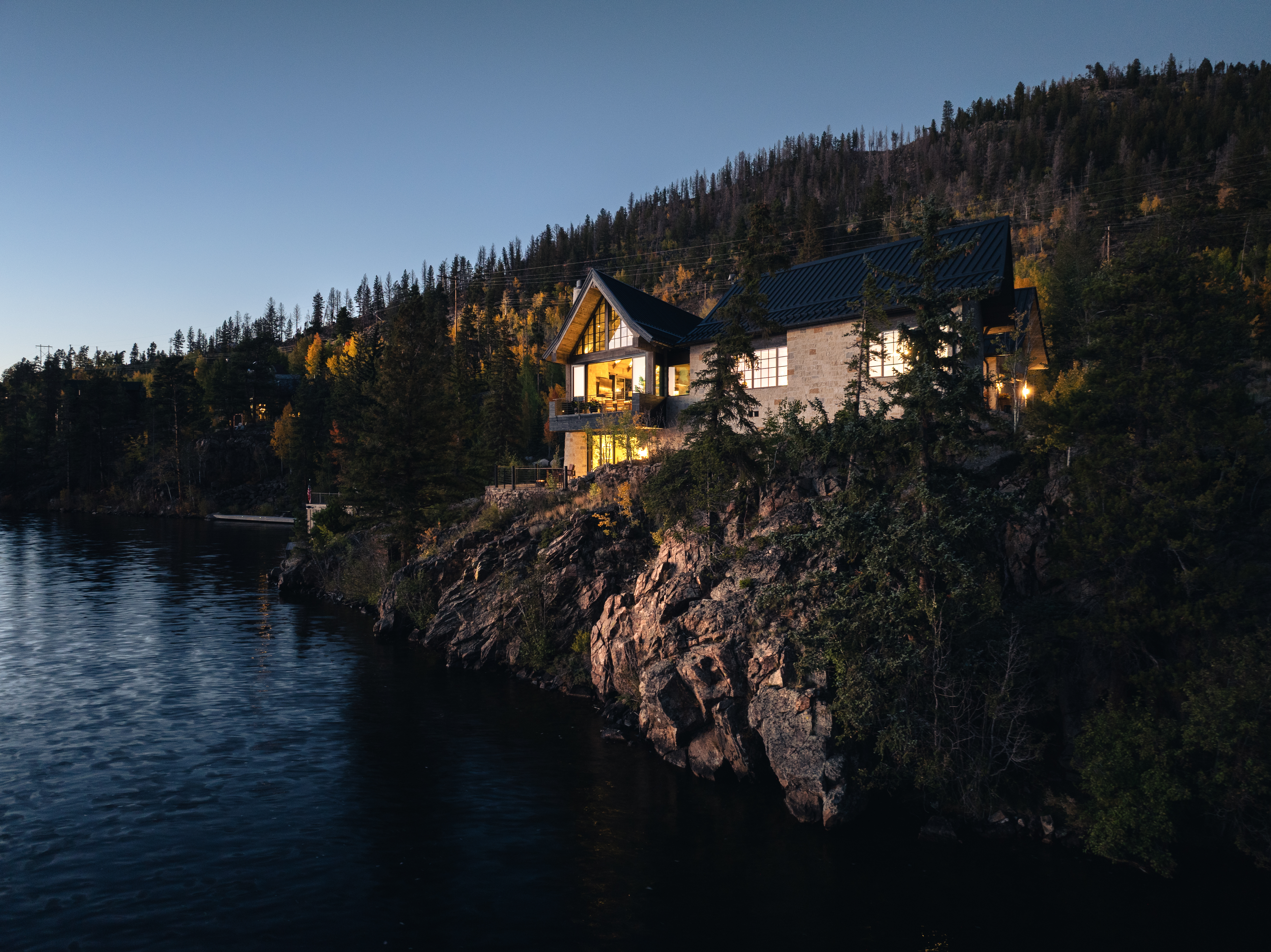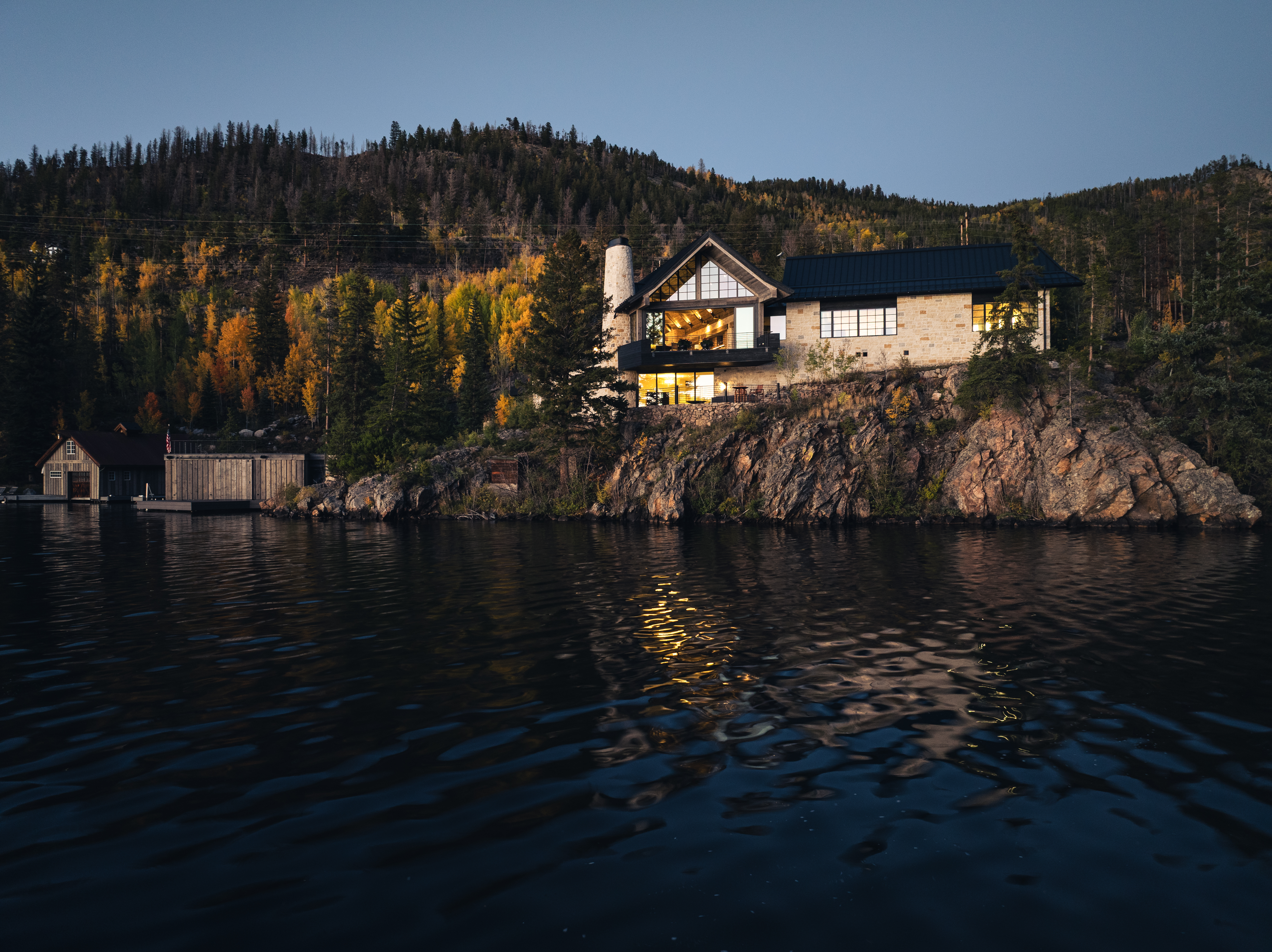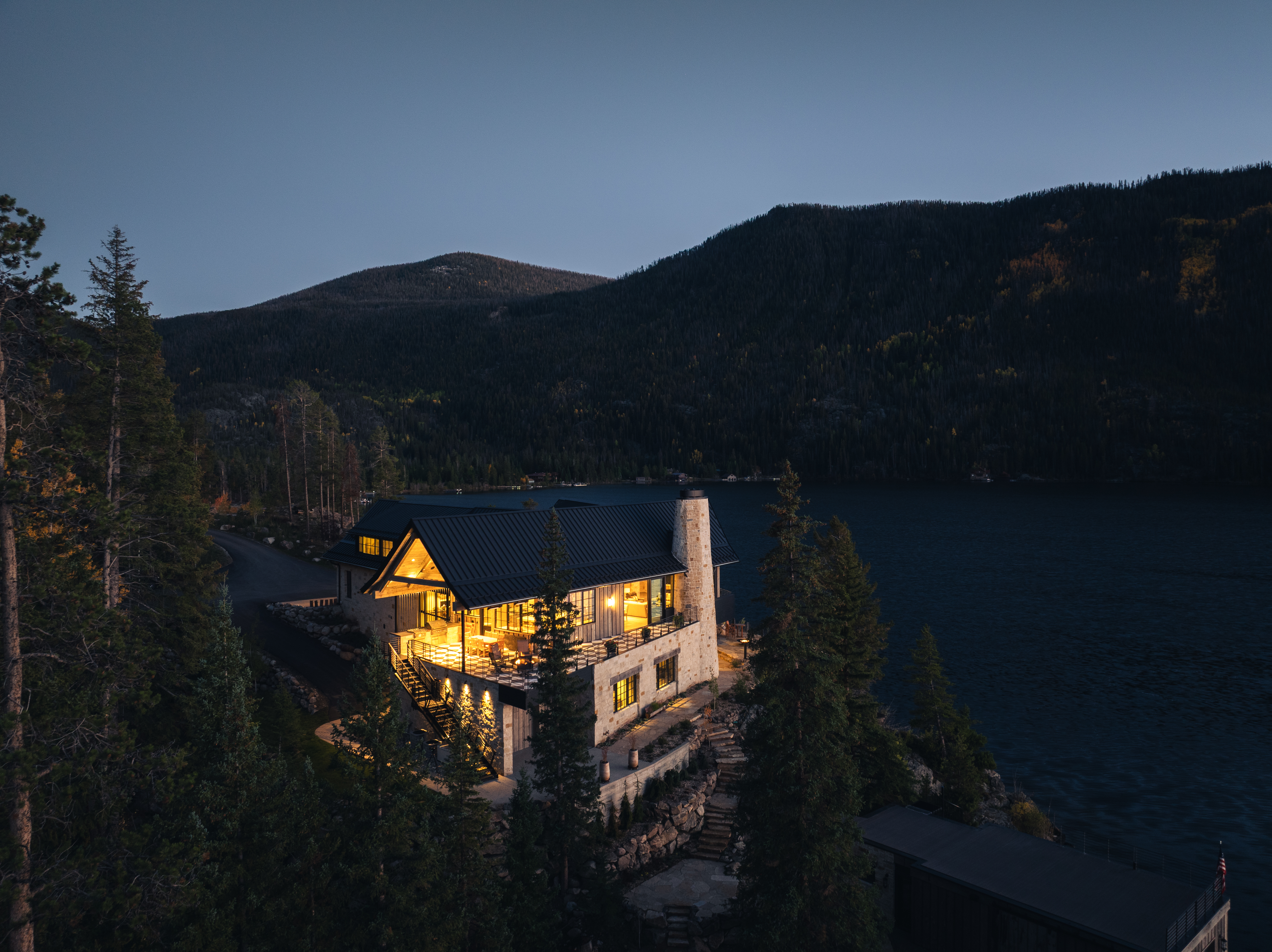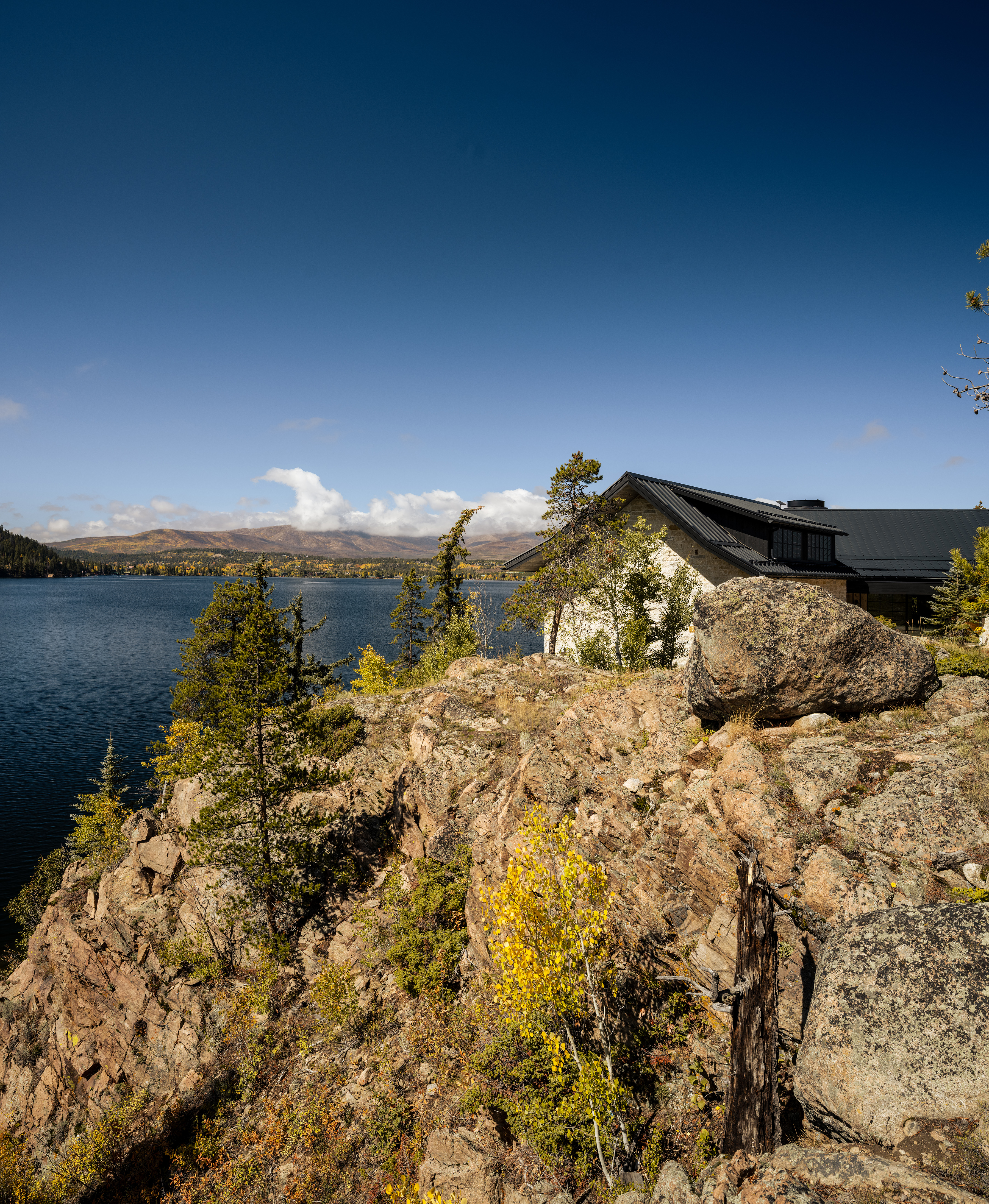 perched on a cliff above grand lake