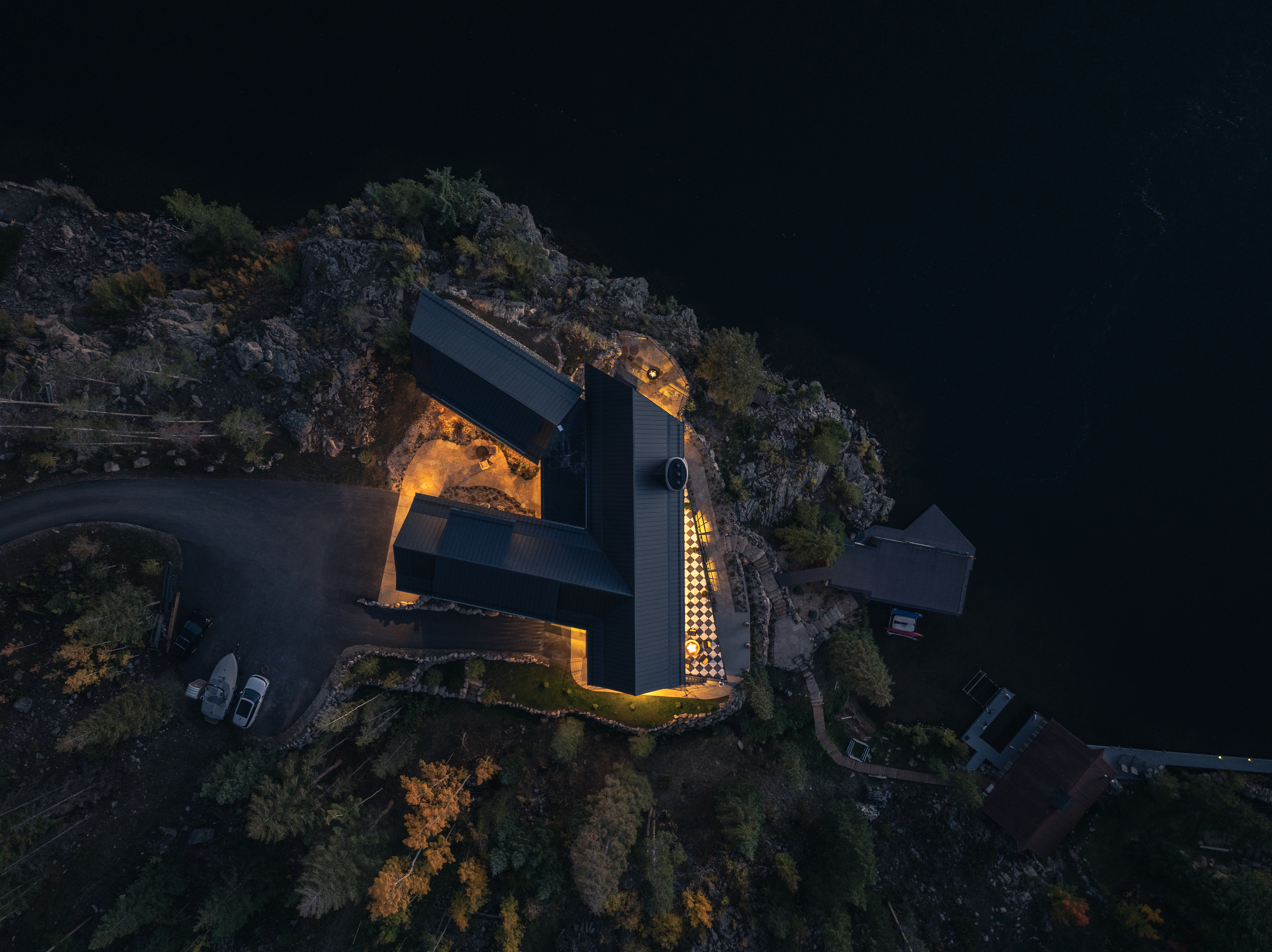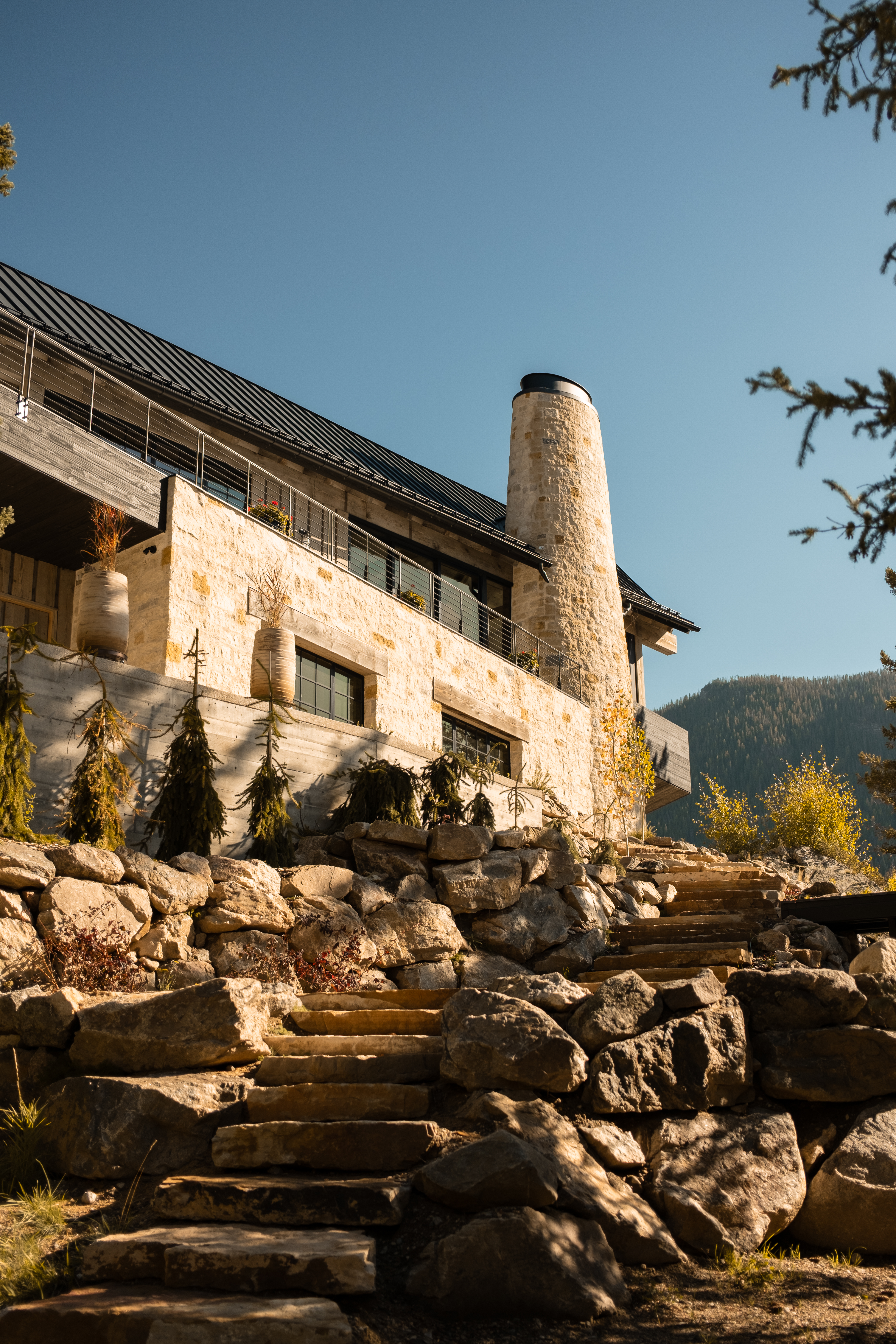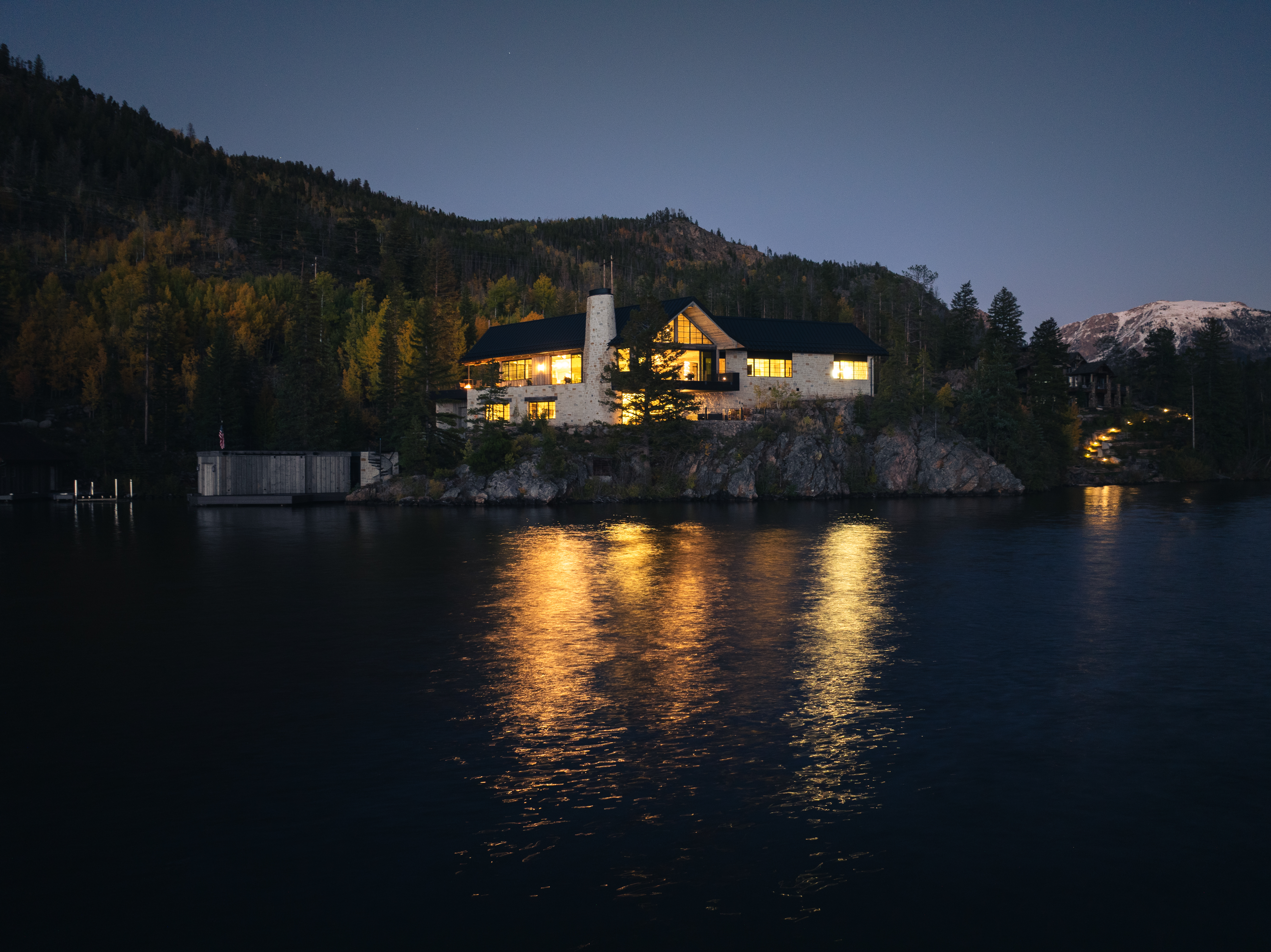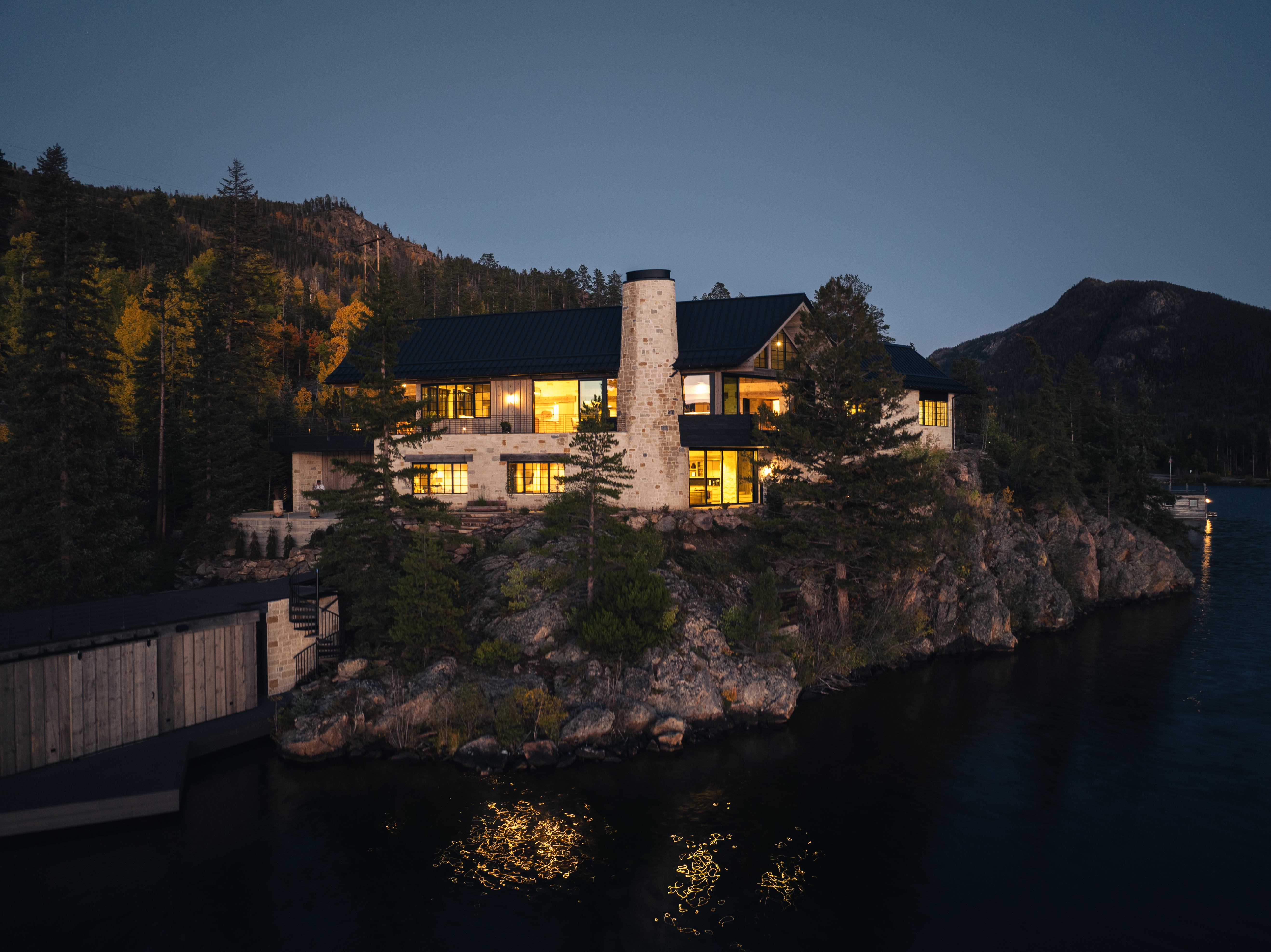 perched on a cliff above grand lake